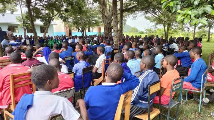 We support mentorship and empowerment programs. Here with Tanzanian schoolchildren during a visit.